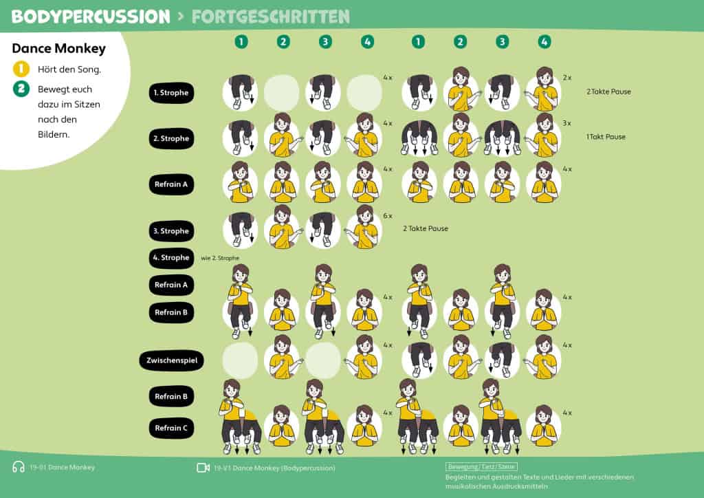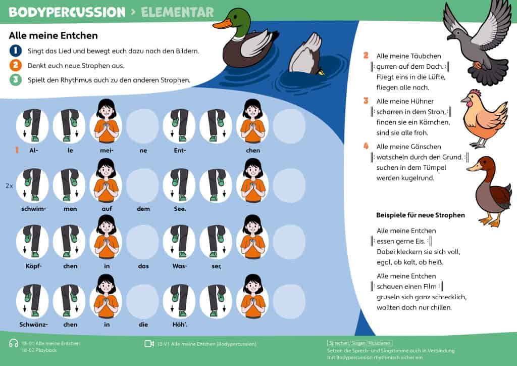 Viele Inhalte lassen sich auf unterschiedlichen Niveaustufen umsetzen – zum Beispiel bei Bodypercussion, Liedbegleitung oder grafischer Notation.